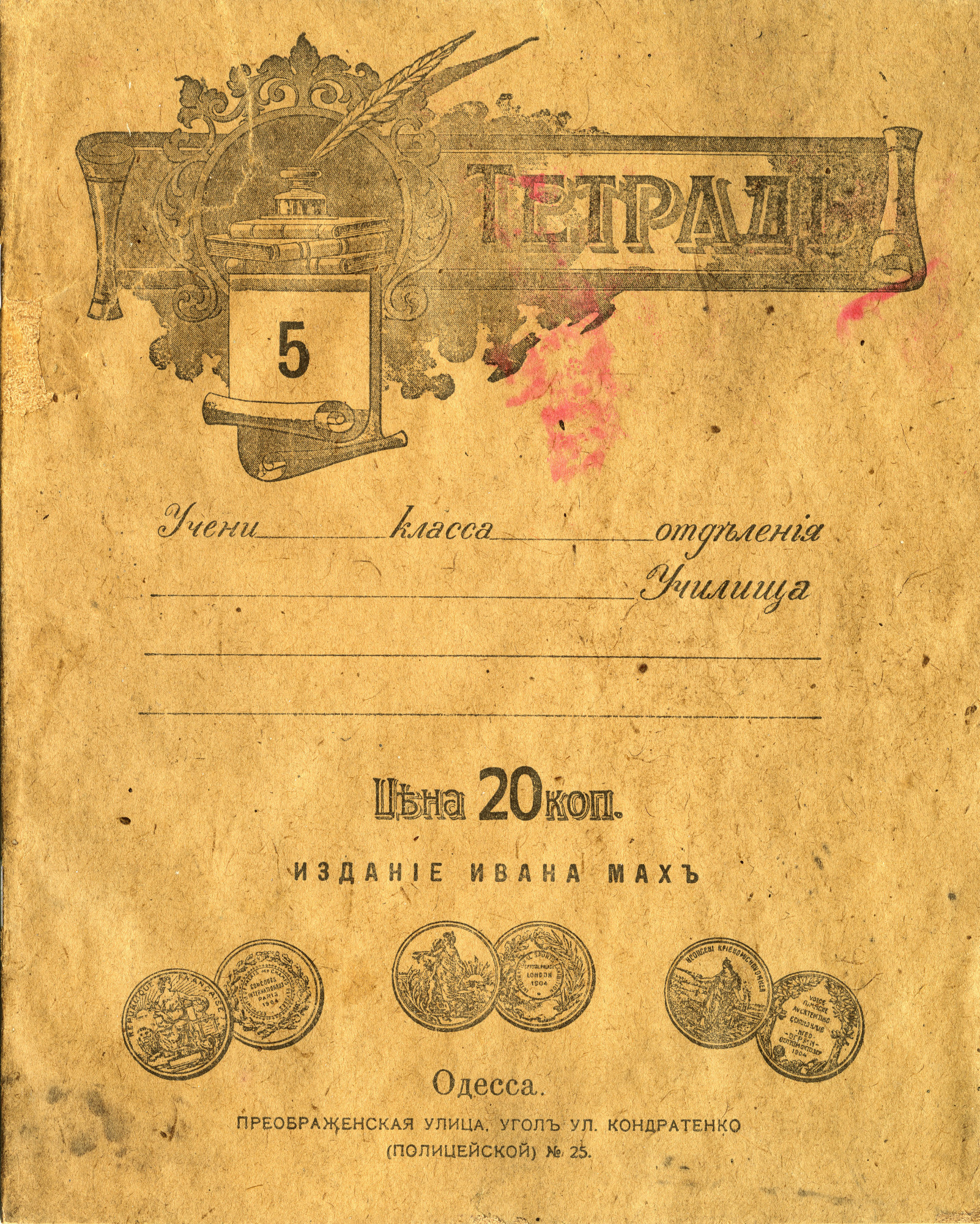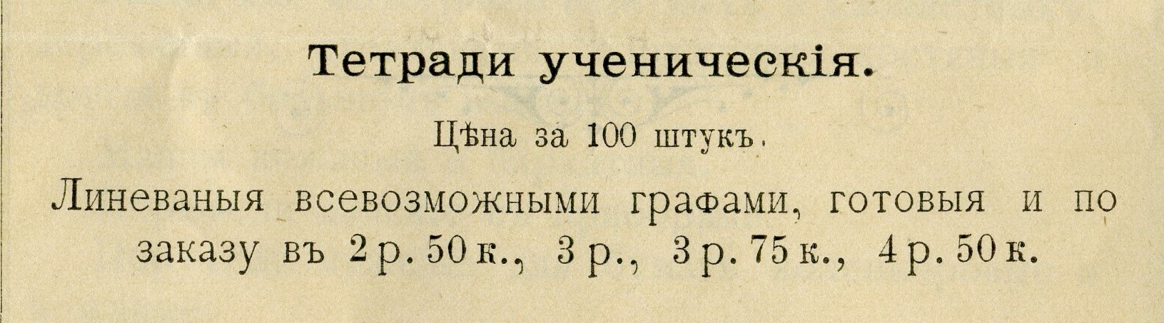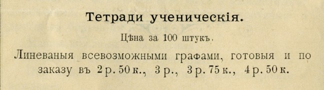 | До революции массово выпускались не только ученические и общие, но и рабочие тетради, то есть те, в которых есть печатный текст и необходимо что-либо дописать от руки.