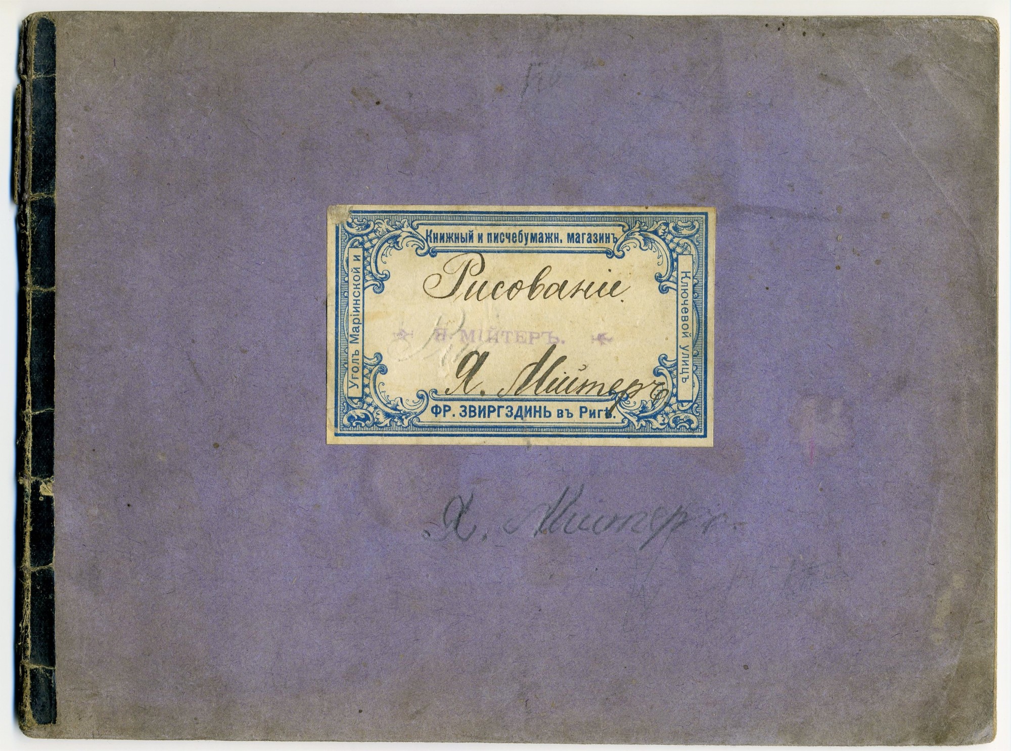 | Углы у тетрадей не были скруглены, а вот рамки иногда скругляли и почему-то только петербуржские магазины. Впрочем, Питер всегда отличался более изысканными изделиями и дизайнами. Обратите внимание – на правой тетради знак «Поставщик двора его императорского величества». | |||||||||||