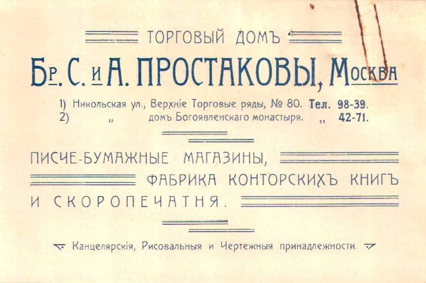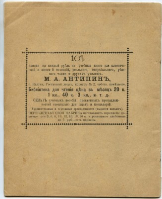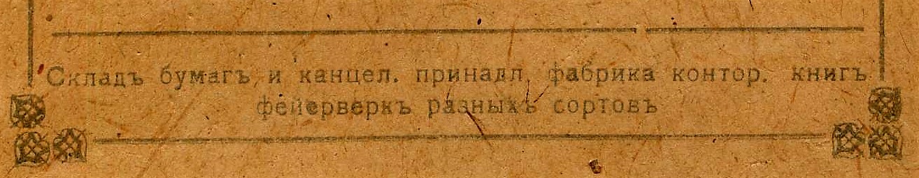 | Разумеется, канцелярские и писчебумажные товары до революции, как и сегодня, продавались и в книжных магазинах. Более того, многие книгоиздатели, как и сегодня, производили тетради либо в своих типо-литографиях, либо под заказ. В книжных магазинах канцелярские отделы либо были обособлены внутри, либо имели отдельный вход, если писчебумажно-канцелярский бизнес разрастался до уровня книжного. Не правда ли, очень похоже на современную книжную розницу? | |||||||||||