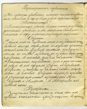 Плотность бумаги колебалась от 60-ти до 90 гр./кв. м. Например, у Сытина – не более 60-65 грамм. В большинстве случаев она составляла приблизительно 70 грамм. Но это всё по ощущениям, без взвешивания. Гладкость высокая, я бы даже сказал, очень высокая, практически у всех, имеющихся в моём распоряжении образцов. Рукописный текст, написанный перьевой ручкой на просвет не просвечивал, по всей вероятности, из-за высокой степени проклейки и гладкости. Терминология и линовки.