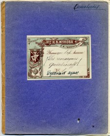 У петербуржских тетрадей, фото которых размещены выше, есть ещё одна особенность – скобы загнуты наружу, и обклеены цветной бумажной лентой. Кстати, такой вариант скрепления я встретил ещё и у московских тетрадей, например, у «Мюр и Мерилиз» и у тетрадей магазинов наследницы того самого Ивана Васильевича Жукова, что располагался на Красной площади на месте современного ГУМа (фото такой тетради будет чуть дальше). Столичный «шик»? В смысле, обеих столиц. Но позднее подобный "спецэффект" встретился также у муромских, рижских и саратовских тетрадей. В любом случае, явление это не было массовым, но подражали, скорее всего, именно столичным производителям. Левая тетрадь на фото ниже по формату - аналог современной «для записи слов», то есть примерно А6. | |||||||||||