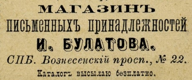| Вариаций в обозначении продукции, которой торговал канцелярский магазин до революции, было много, были, в том числе, и такие упрощённые вывески: | |||||||||||