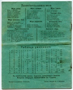 В последнюю группу по нашей классификации издателей тетрадей входили «Губернские Земства» или «книжные склады Губернских Земств» и городские общины. В дореволюционной России, задолго до советской программы ликвидации безграмотности, Губернское Земство активно поддерживало развитие «народного образования». В частности, земства субсидировали часть расходов на обучение детей. Для этой цели создавались «книжные склады» при земствах, основной задачей которых было снабжение учебных заведений и вообще населения необходимой учебной литературой и книгами для чтения. Но эти же «книжные склады» распространяли и школьно-письменные принадлежности. В отраслевом музее выложено несколько тетрадей, изданных различными земствами, но выпускались, например, и земские карандаши. с обязательным упоминанием земства на одной из граней карандаша, как на карандаше по ссылке или на лицевой стороне тетрадей: | |||||||||||