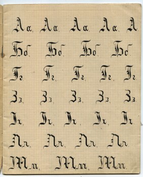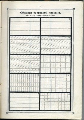 Обновлено 24.11.19 Ученическая (или школьная) тетрадь, как предмет для обучения, появилась тогда, когда лист писчего формата (14 х 17,5 русских дюйма или 35,56 х 44,45 см.) стали складывать вчетверо для удобства письма. По всей вероятности, тогда же в русском языке возник термин «тетрадь», применительно к учёбе. Тетрадью назывался как один, сложенной вчетверо, лист (писчего формата), так и несколько таких листов, обязательно в обложке, скреплённые вместе, то есть, - ученическая тетрадь. Собственно, само это слово образовано от греческого «тетра» (четыре). До революции листность тетрадей измерялась в листах писчего формата, из которых она была изготовлена, а не в количестве листов формата уже готовой тетради. В «прейс-курантах» писчебумажных фабрик и магазинов так и писали: тетрадь «в 3 листа» (то есть, фактически в 12), «в 4 листа» (в 16), «в 5 листов» (в 20). Подробнее об этом во второй части обзора дореволюционных тетрадей – Тетради до революции. Производитель – оптовик – магазин: «под фирмою покупателя» и с любой из 25 линовок. В XIX веке и в начале ХХ века ученики писали на ученических аспидных (грифельных) досках, которые использовались в отечественных школах параллельно с классической бумажной тетрадью вплоть до 30-х годов прошлого века. Грифельные доски, в свою очередь, заменили продержавшиеся до средневековья восковые дощечки – «церы». Различные виды линовок для обучения письму, дошедшие до наших дней с небольшими изменениями, скорее всего, изначально появились именно на индивидуальных грифельных досках, и только затем – в бумажных тетрадях. | |||||||||||