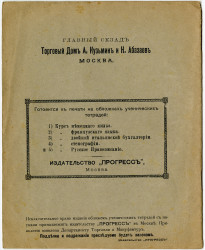 Так как «книжный склад Курского Губернского Земства» функционировал с 1874 по 1880 г.г., то можно предположить, что данная тетрадь самая ранняя из известных нам. Подробнее об этом по ссылке. Кстати, цвет её обложки – зелёный, как и у подавляющего большинства современных тетрадей в бумажной обложке. Вверху, справа от тетради «Курского Губернского земства» я выложил ещё одну тетрадь - «Московского склада учебных пособий». Это означает, что не только «земства» имели собственные «книжные склады», способствовавшие распространению образования в Российской Империи, но и городские общины, в частности, в Москве. | |||||||||||