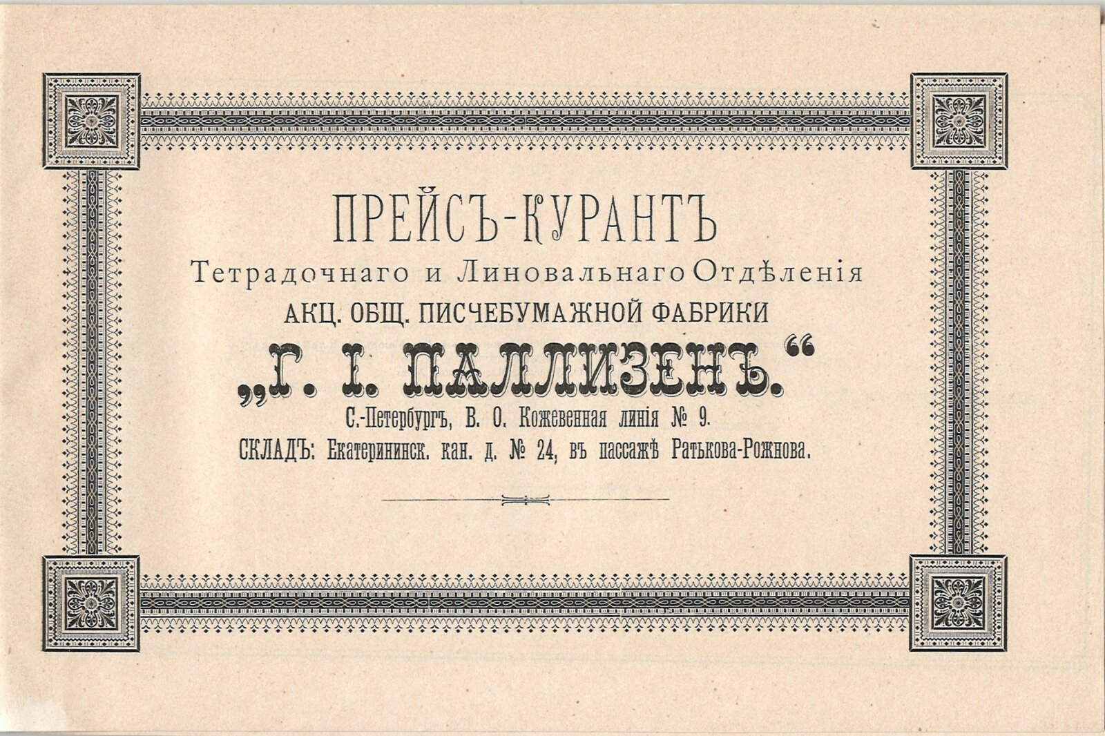 Прейс-Курант Г. И. Паллизен, 1896 г. Отраслевой Канцелярский музей.