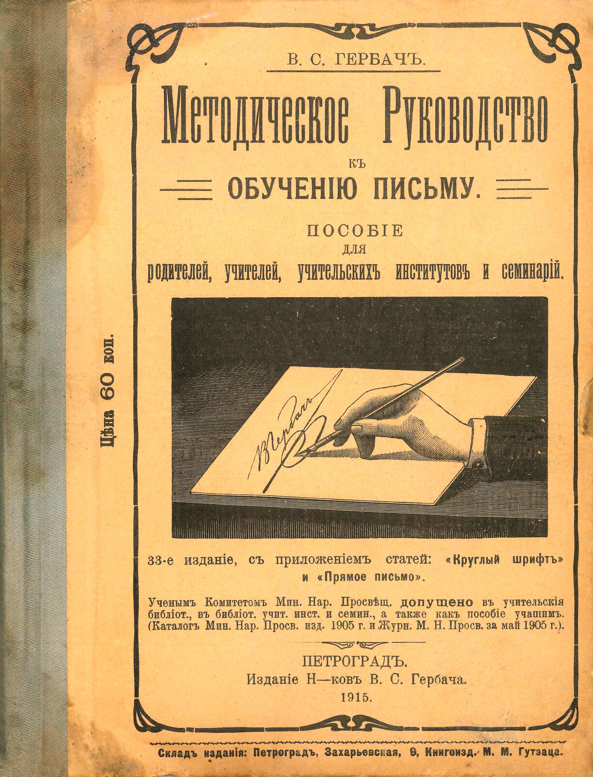 Методическое руководство к обучению письму. Пособие для родителей, учителей, учительских институтов и семинарий. 33-е издание, 1915 г. В.С. Гербач. Отраслевой канцелярский музей.